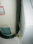 Exterior pipe run is not secured.