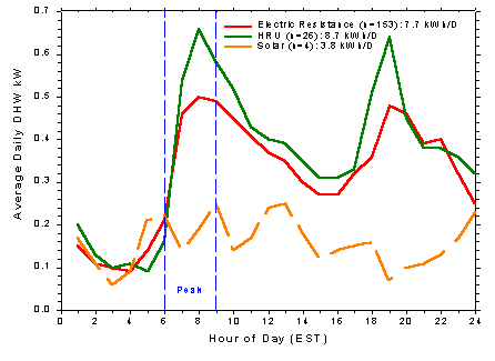 Measured January DHW load profiles by system type.