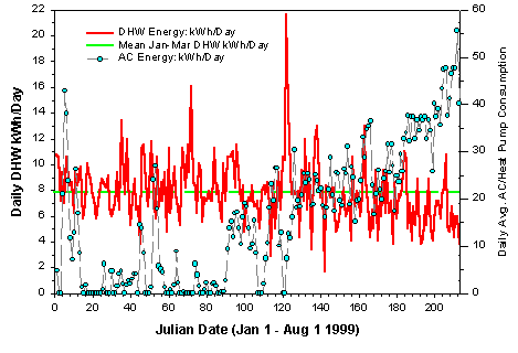 day 90 (March 31st), recorded water heating electrictiy use shows little