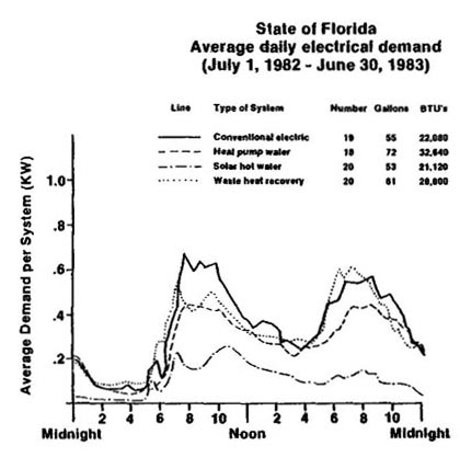 Figure 1. Average daily electrical load profiles for four types of water heating systems. Back to publication